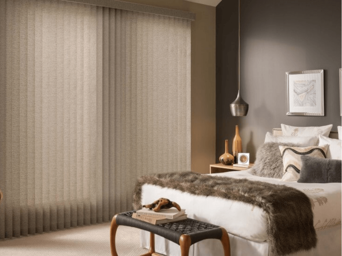 Vinyl vertical blinds are common in rental properties and high-traffic spaces because they offer durability at a lower price point.